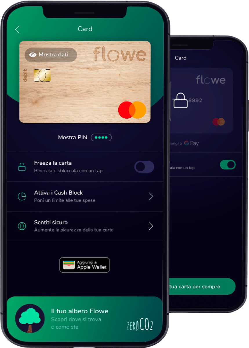 Quale che sia il profilo scelto, con il conto di pagamento Flowe è associata una carta di debito virtuale che opera su circuito Mastercard ed è già compatibile con Apple Pay e Google Pay. Perciò è possibile usare il conto Flowe per pagare in tutta sicurezza da iPhone, iPad, Apple Watch e gli altri dispositivi abilitati ai due sistemi di pagamento elettronici in proprio possesso.