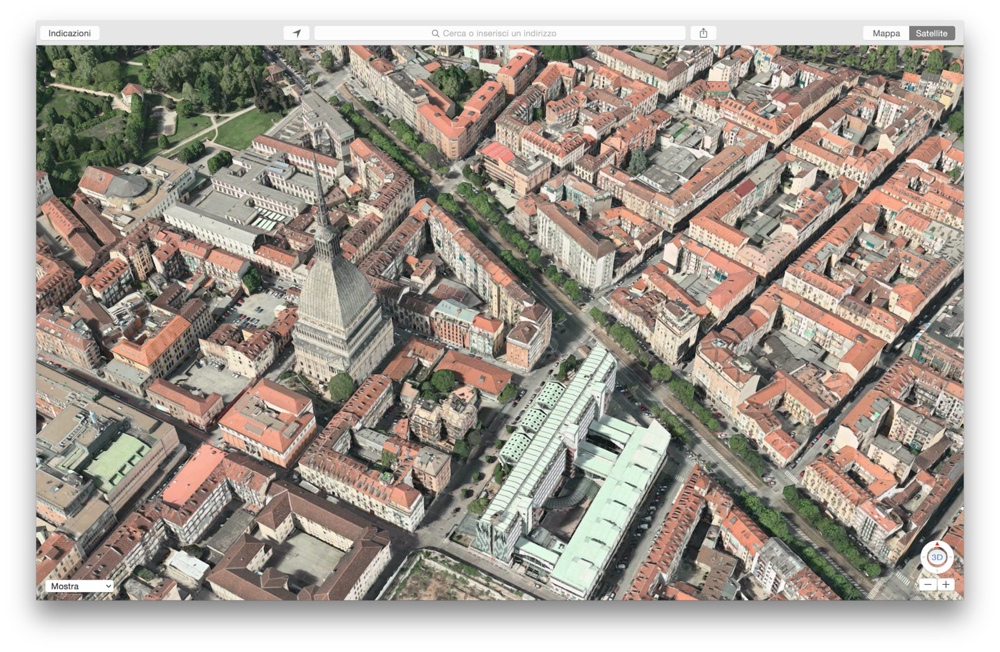 Apple ha esteso la visuale 3D delle proprie Mappe ad altre città: Flyover Torino è disponibile sui dispositivi iOS e Mac. Basta attivare la funzione nelle Mappe di Apple per poter ammirare la Mole Antonelliana, Piazza Castello, il Lingotto e tutta la città con visuale 3D dall’alto.
