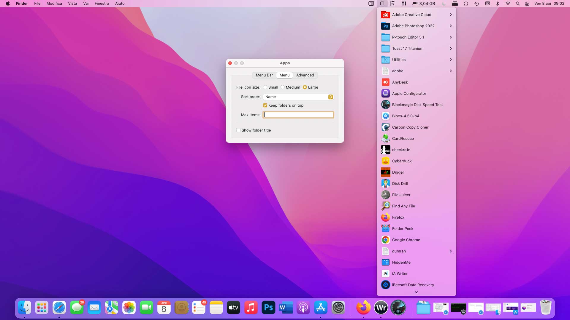 Folder Peek una utility per macOS 12.x che permette di avere a portata di mano applicazioni e cartelle richiamandole dalla barra dei menu.