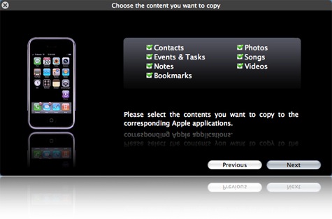 Un volta concluso il processo, potrete tranquillamente connettere il nuovo dispositivo al Mac e ripristinarvi i dati utilizzando la classica interfaccia di iSync, iTunes o FoneLink, a seconda del modello. Fone2Phone è compatibile con iPhone e altre marche di telefonino, ma anche con iPod.