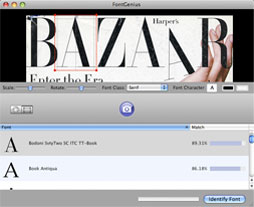 FontGear, software house in precedenza nota come Morrison SoftDesign (tra gli applicativi più noti, ricordiamo FontDoctor), ha rilasciato FontGenius, un’applicazione commerciale (39,99$) che sfrutta una tecnologia di riconoscimento proprietaria per identificare i caratteri usati in un’immagine e mostrare le anteprime dei caratteri identificati.