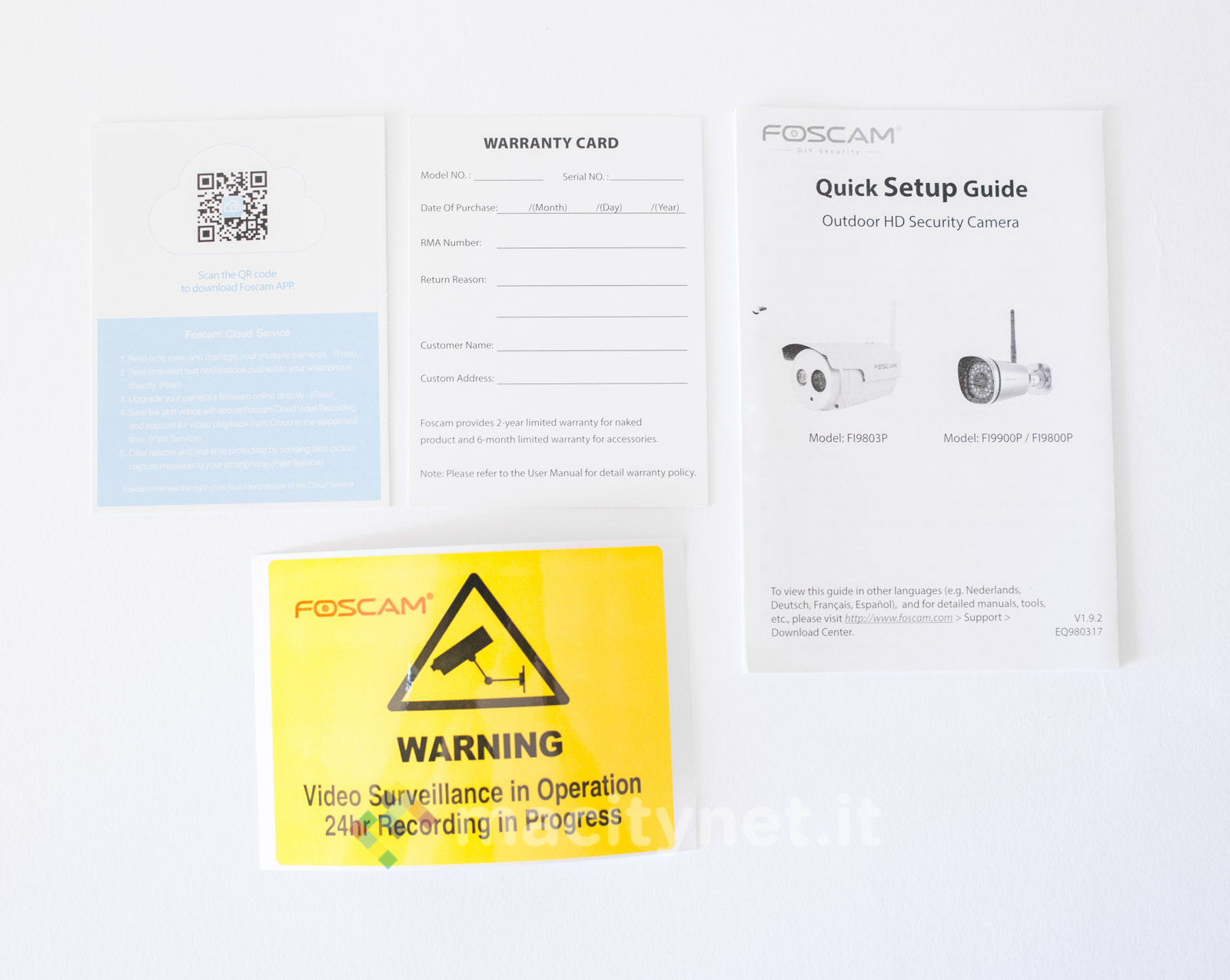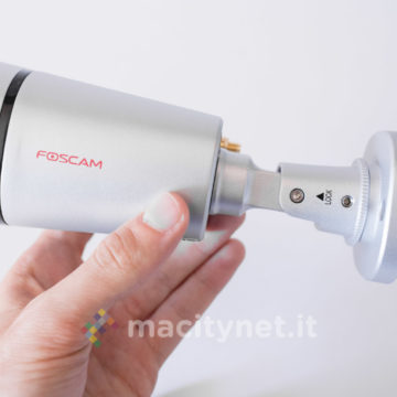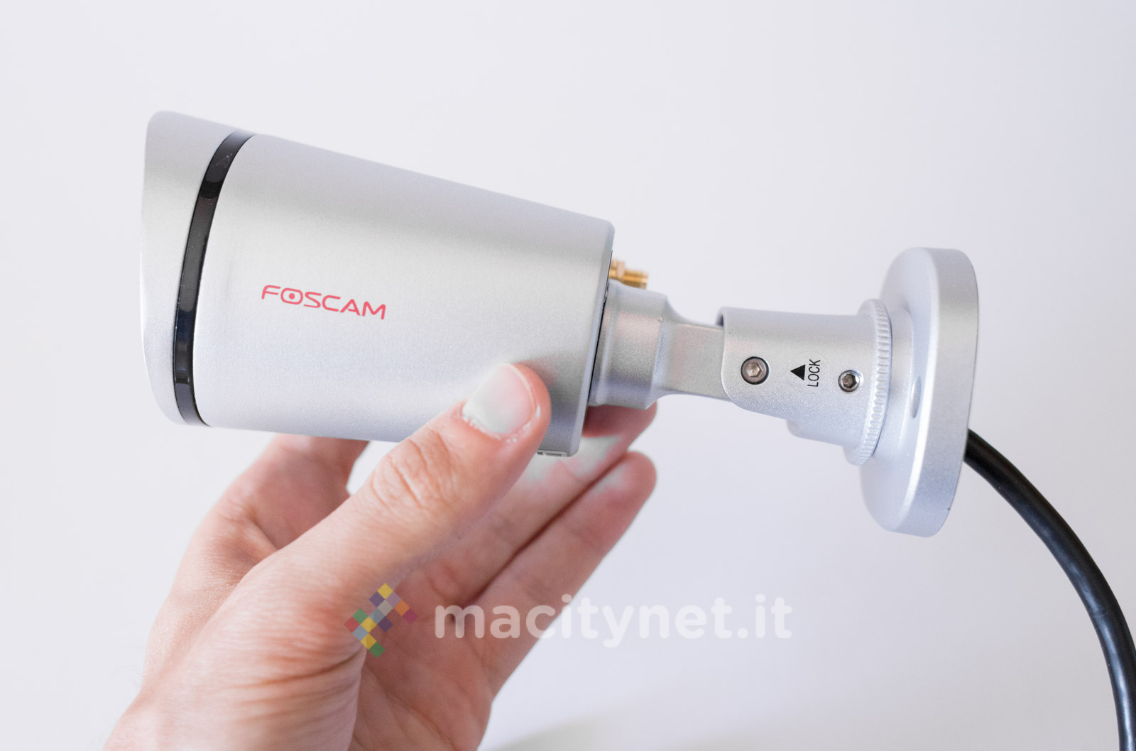 La telecamera FI9900P è invece costruita per essere utilizzata prevalentemente all’aperto, pertanto è impermeabile e capace di resistere alle intemperie. Tutto il corpo è realizzato in robusto metallo e si utilizza necessariamente fissandola al muro con due tasselli (inclusi in confezione).