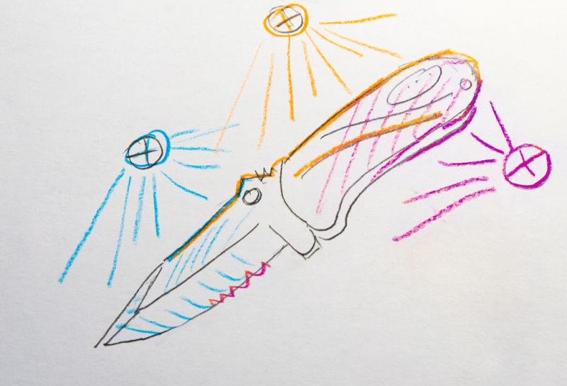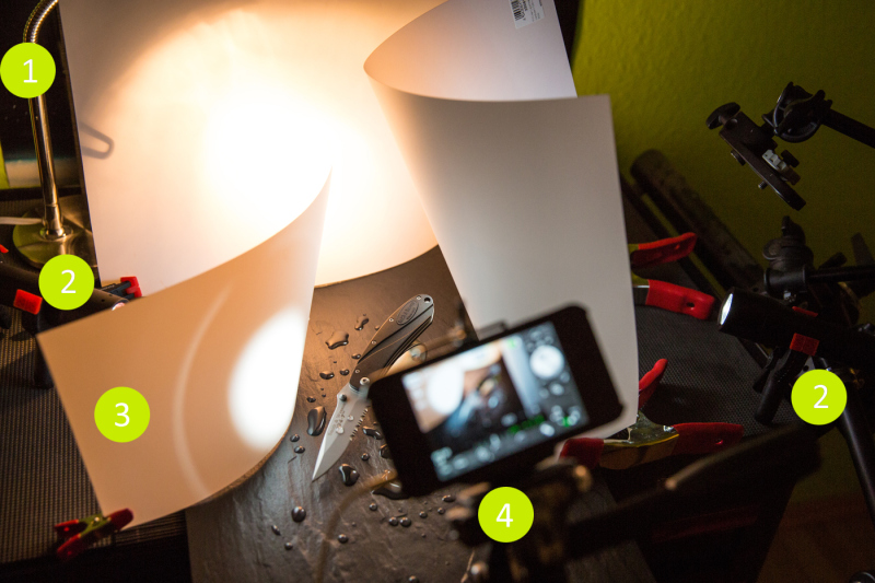 Uno dei più interessanti e ricercati è lo scatto dedicato ad un coltello a serramanico, che mostra livelli di dettaglio e nitidezza di ottimo livello, con un risultato finale che non farebbe pensare ad un’immagine ottenuta con iPhone. In questo caso il segreto sta nell’illuminazione scelta, utilizzando tre pannelli bianchi e tre diversi sorgenti luminose, in grado di far risaltare le differenti superfici del soggetto.