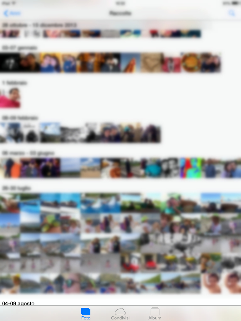 Accendendo all’applicazione Foto, tutte le proprio immagini potranno essere rinvenute sotto il tab “foto”, selezionabile dalla barra in basso. Qui vengono salvati tutti gli scatti effettuati da iOS 8 in poi e sempre qui sono conservate tutte le foto che precedentemente si trovavano all’interno della cartella rullino foto. Questo tab suddivide le proprie immagini in Momenti, Raccolte, Anni. Queste tre opzioni di visualizzazione permetteranno, in sostanza, di rimpicciolire le anteprime delle foto, in modo tale da accedere con più facilità all’immagine che si sta cercando. In ogni caso, all’interno del tab foto è possibile rinvenire tutti gli scatti passati e quelli futuri, suddivisi per data.