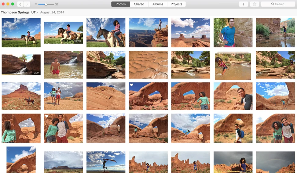 Il nuovo design dell’applicazione Foto utilizza una visualizzazione suddivisa per Momenti, Collezioni e vista anni, già nota ai possessori di un iPhone o un iPad, e dunque i vari scatti saranno automaticamente organizzati in base alla data, ma anche alla posizione e al luogo. L’interfaccia di Foto OS X beneficerà, ovviamente, del più ampio schermo del Mac, rispetto alle controparti iOS, così da avere l’intera libreria fotografica sempre sott’occhio, Una toolbar minimalista offre comandi rapidi a portata di mano, dando accesso immediato alle foto condivise, agli album creati, e ai progetti personalizzati. Queste finestre potranno anche essere sfogliate attraverso gesti sul Magic Mouse o sul trackpad, così da avere a portata di slide ogni foto.