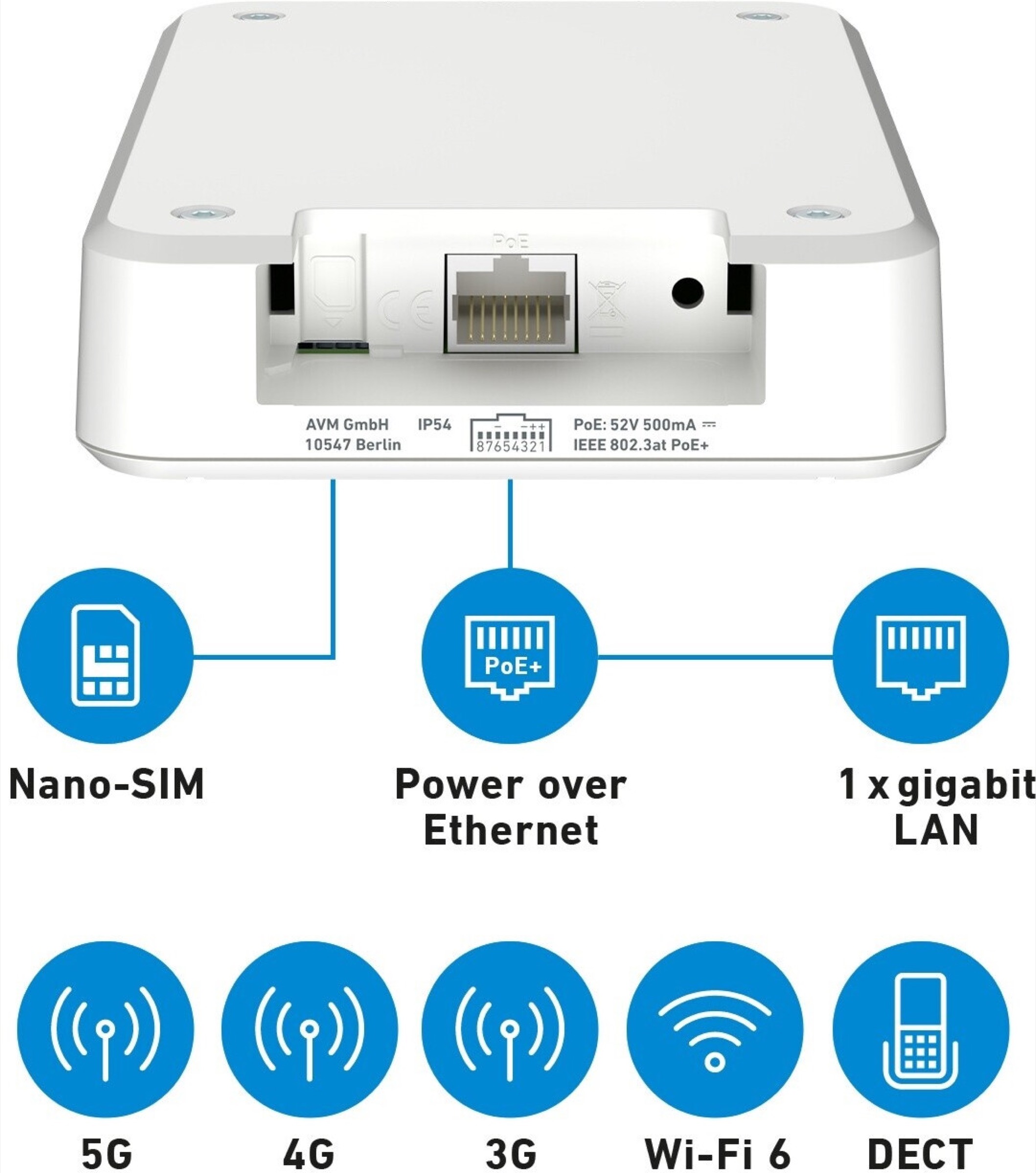 Vi permette persino di utilizzare la scheda telefonica a trecentosessanta gradi perché tramite la base DECT è possibile collegare fino a 6 telefoni cordless e 10 telefoni IP e quindi telefonare tramite VoLTE (Voice over LTE), VoNR (Voice over New Radio) oppure in alternativa via VoIP/SIP.