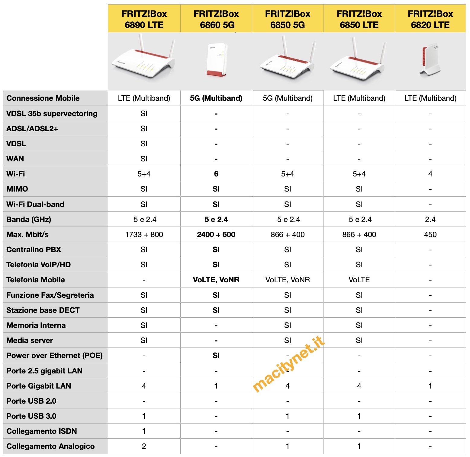 Qui sotto trovate invece le schede prodotto degli altri router LTE di Fritz e un confronto delle specifiche tecniche principali: