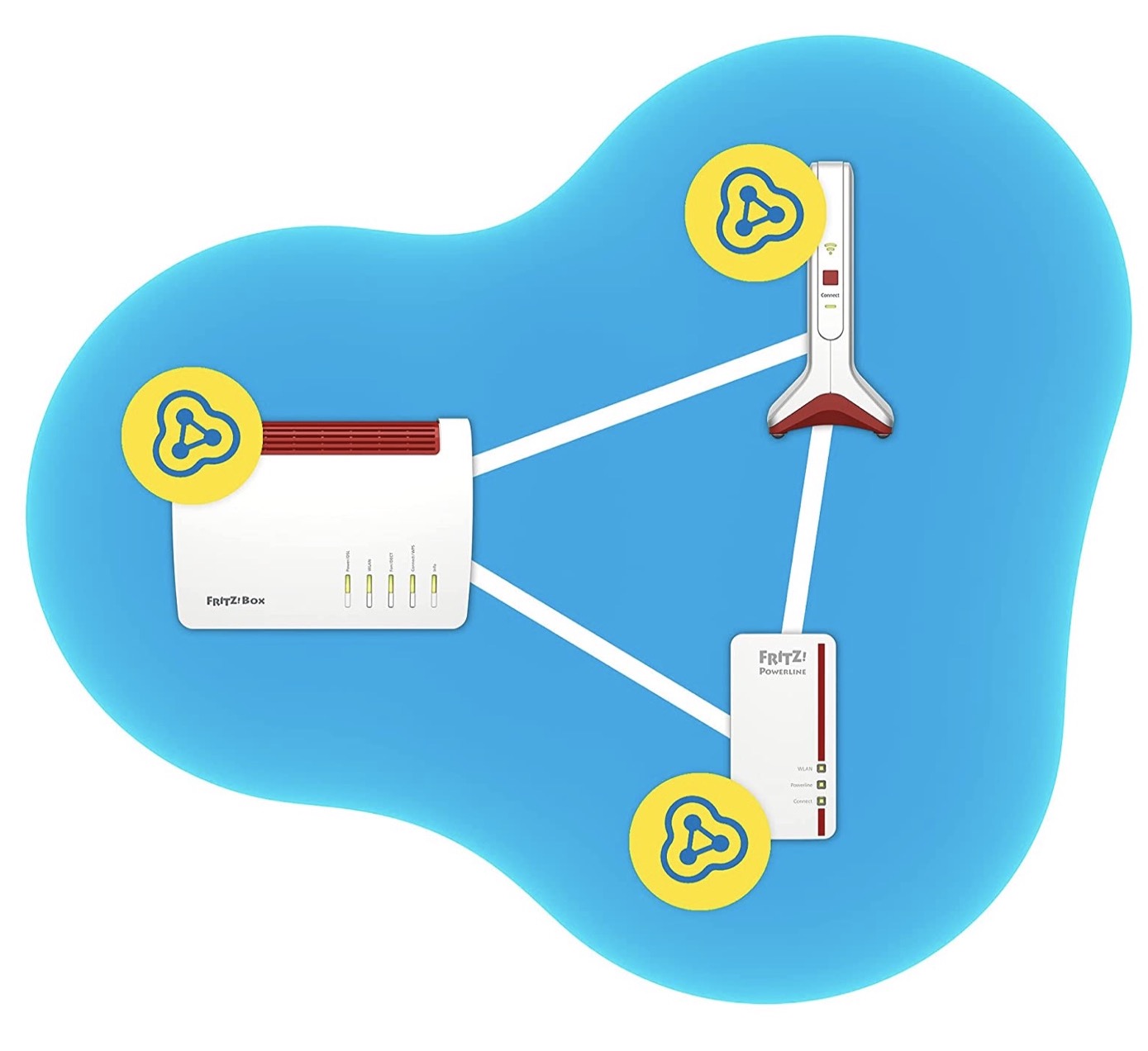 Associando un roueter FRITZ!Box al FRITZ!Repeater 6000 si crea una rete Mesh intelligente, con tutti i dispositivi che utilizzano il miglior segnale Wi-Fi possibile a seconda della loro posizione, adatto a grandi appartamenti e condizioni strutturali più complesse.