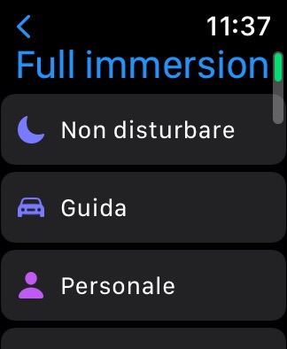 Quel che è possibile fare da Apple Watch, allora, è attivare un qualsiasi profilo full immersion già impostato su iPhone, o iPad. Per ciascuno di questi, inoltre, è anche creare pianificazioni personalizzate e scegliere di condividere il profilo su altri dispositivi. Ecco come utilizzare Full Immersion su Apple Watch.