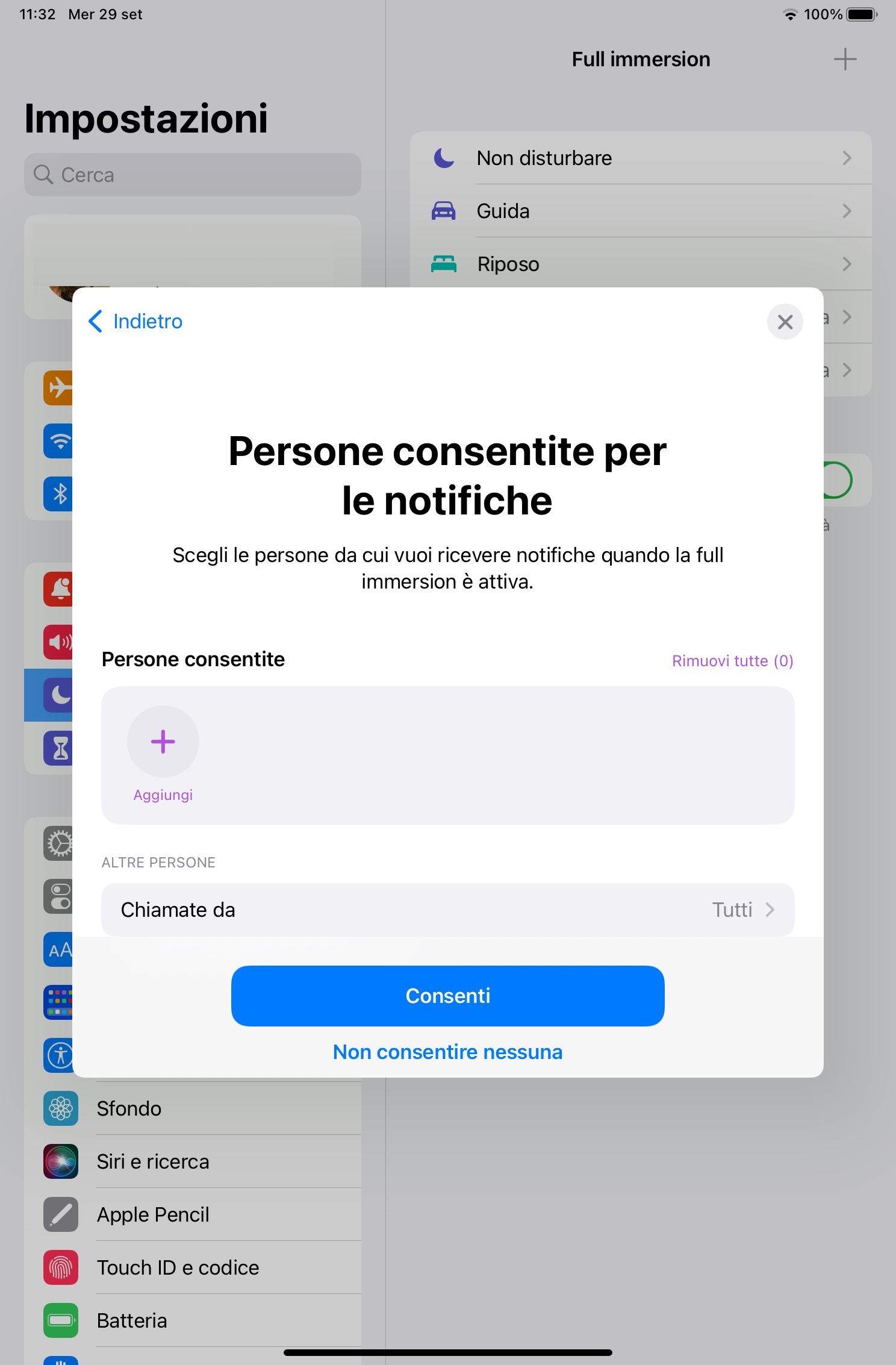 Ed allora, per attivare Full Immersion su iOS o iPadOS è sufficiente andare su Impostazioni > Full immersion. A questo punto, è possibile toccare un’opzione di full immersion, come Non disturbare, Personale o Guida, poi attivare Full immersion.