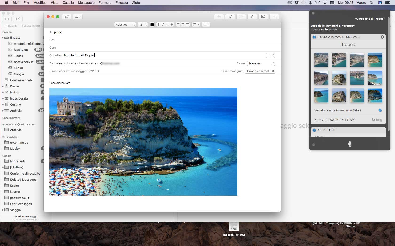 Come spiegato quando Siri trova una immagine o una posizione, è possibile trascinarla in un messaggio e-mail o in un documento. È anche possibile incollare o copiare il testo. Per esempio, pronunciando “Cerca su Internet immagini di spiagge in Calabria” potremo trascinare una immagine dalla finestra Siri in un’e-mail, in un messaggio, in una nota e altro ancora.