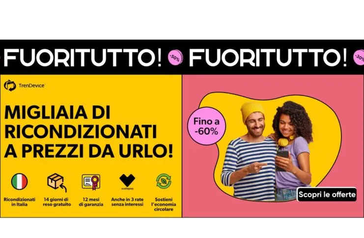 Se state cercando un nuovo iPhone, iPad, Mac oppure state pensando di sostituire i vostri vecchi auricolari con le ben più tecnologiche AirPods, approfittate degli incredibili sconti su tutto il catalogo di Ricondizionati TrenDevice. Occasioni che capitano poche volte all’anno: approfittatene subito perché sono solo fino ad esaurimento disponibilità. Visitate la pagina dedicata al Fuori Tutto e scoprite gli iPhone e iPad più scontati di oggi, i Mac in offerta limitata e tante altre occasioni da non perdere.