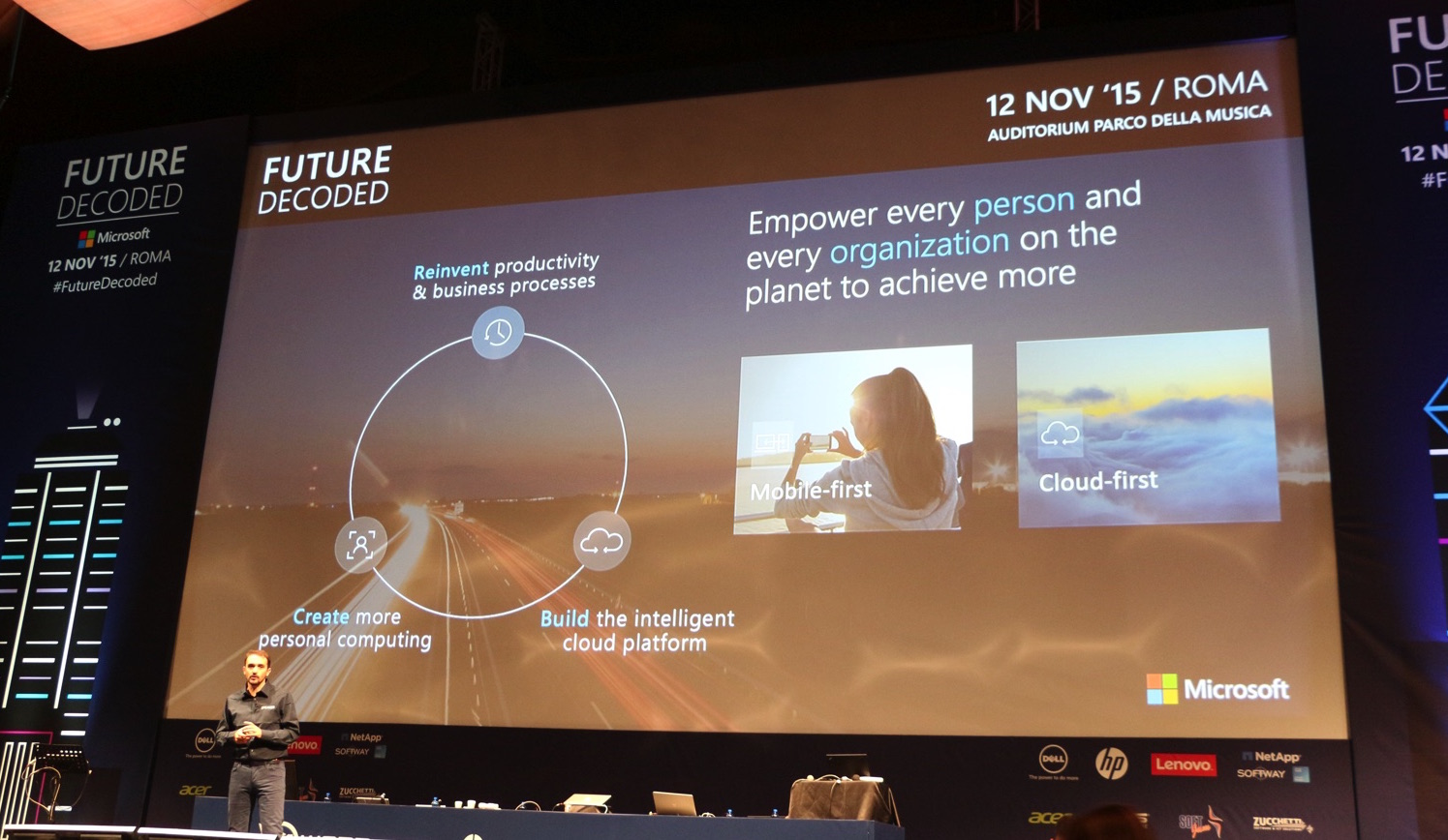 Evento Microsoft a Roma per parlare del futuro ma anche della strada che porta al presente, una strada che vede un’azienda con nuovi obiettivi e priorità e soprattutto ha chiaro che il passaggio dallo stato di quasi monopolista a competitore nel campo dei sistemi operativi comporta un’attitudine diversa che Microsoft chiama Openess, apertura a piattaforme, dispositivi, apertura al cloud.