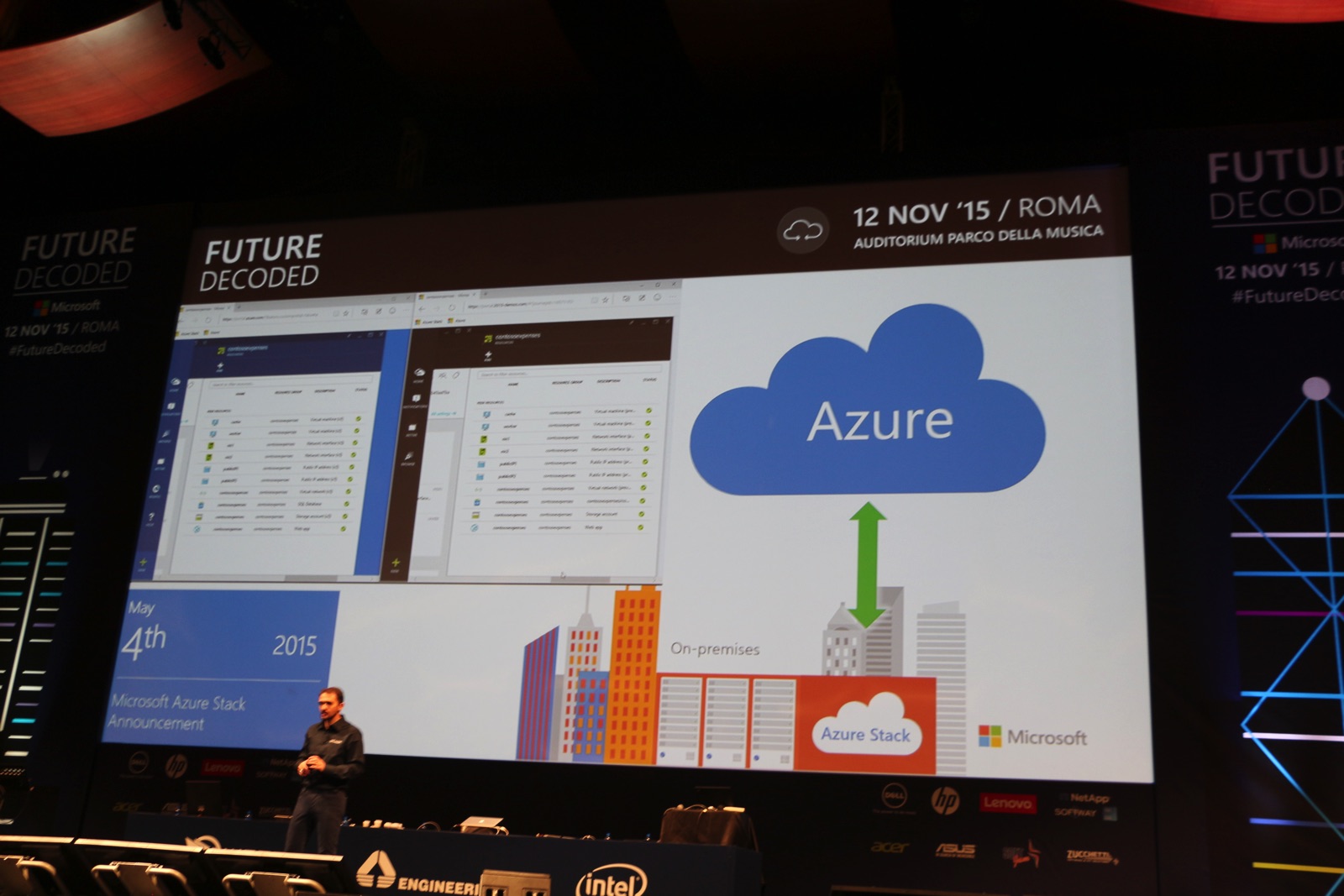 il 4 Maggio arriva Azure Stack per portare Azure dal cloud al datacenter locale, una sorta di Azure privato con la stessa dashboard: l’obiettivo è quello di integrare le pratiche di gestione di 100 datacenter mondiali in un datacenter locale: il cliente ha la scelta di decidere anche in maniera non definitiva dove mettere il proprio network.