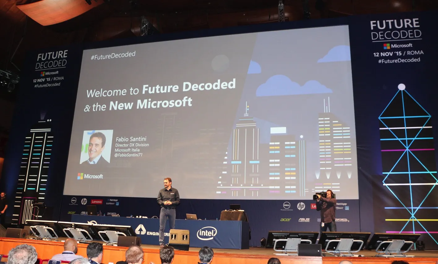 Nel racconto di Fabio Santini sul palco dell’Auditorium la storia della nuova Microsoft inizia il 4 febbraio del 2014 con la nomina del terzo CEO dopo Gates e Ballmer: e la prima sua affermazione è stata “Attenzione cara Microsoft, l’industria oggi non rispetta la tradizione ma rispetta solo l’innovazione”.