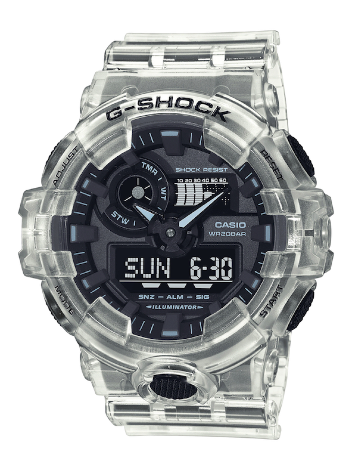I due modelli analogico-digitali (GA-900SKE e GA-2100SKE) sono il pezzo forte delle collezioni. Con il loro inconfondibile design rispecchiano il DNA del marchio G-Shock. Le versioni Skeleton bianco e nero con cinturino e lunetta trasparenti, rappresentano alla perfezione lo Zeitgeist degli appassionati di orologi di tutto il mondo, diventando un classico senza tempo per il futuro.