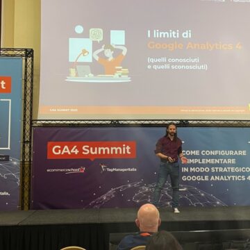 In un caldo pomeriggio d’estate abbiamo partecipato alle sessioni finali dell’evento GA4 Summit organizzato da Tag Manager Italia ed Ecommerce school nei giorni del 30 Giugno e 1 Luglio in quel di Bologna: un’occasione per scoprire le nuove frontiere del data Analytics con Google in occasione dell’arrivo definitivo di GA4, o meglio del passaggio dalla versione precedente di Google Analyrics alla versione 4.