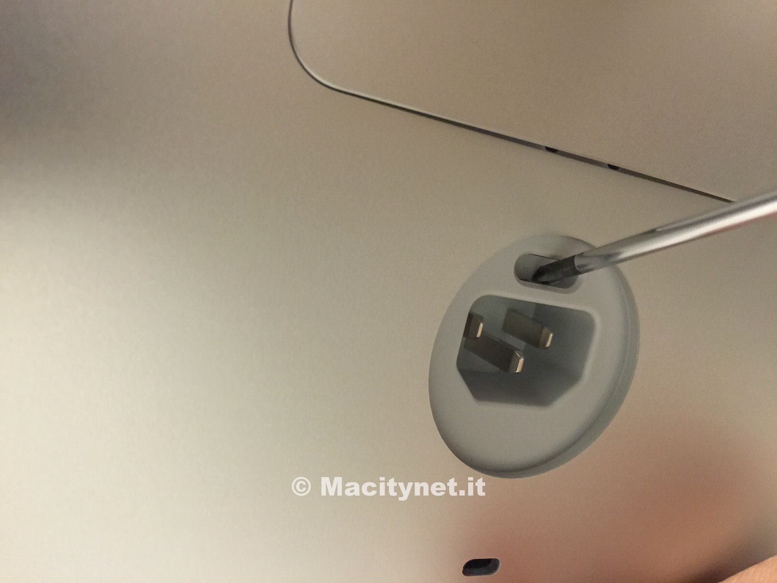 Dentro alla presa troviamoiil bottone per aprire lo sportello della Ram