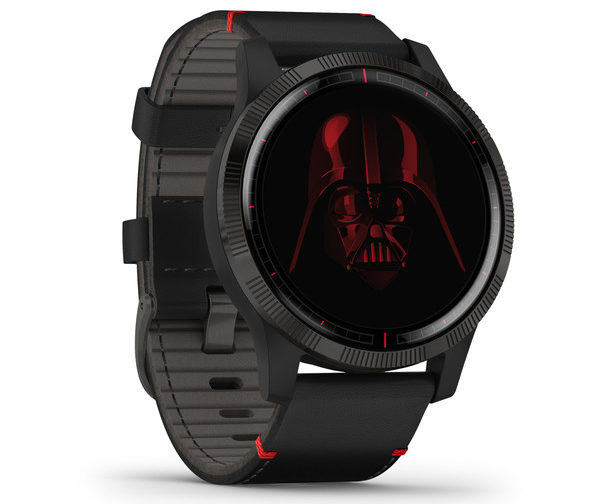 Ogni dettaglio del nuovo smartwatch Garmin Darth Vader Special Edition Smartwatch è realizzato ispirandosi alle gesta del leggendario signore del Lato Oscuro della Forza a partire dal cinturino in pelle nera con cuciture in rosso, il colore dei Sith, e interni in pelle nabuk grigia martellata.