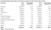 Nella classifica mondiale dei costruttori di telefoni Apple è terza con 38,331 milioni di terminali e un leggero miglioramento della propria quota di mercato che dal 7,8% ora è del 9%. Prendendo in esame solo gli smartphone invece Apple è seconda alle spalle di Samsung ma con una percentuale di mercato in calo: dal 22,5% del 2012 all’attuale 18,2%. Infine Apple risulta seconda anche in base alla piattaforma: mentre Android controlla ormai il 74,4% degli smarthone, iOS scende dal 22,5% del 2012 e ora si assesta al 18,2% del mercato. La terza piattaforma è quella di BlackBerry con 6,2 milioni di unità e il 3% di mercato, mentre Microsoft risulta quarta con il 2,9%.