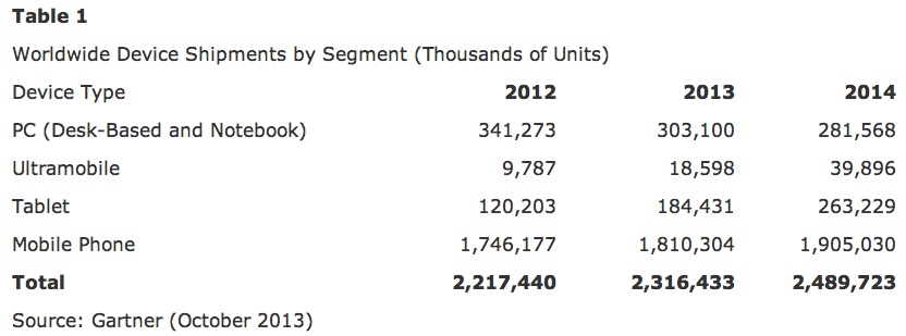 Il mercato dell’ICT si muove a due velocità così come emerge nell’ultimo report di Gartner: per il 2013 la società di analisi prevede che le spedizioni di computer caleranno complessivamente dell’8,4% viceversa le spedizioni di tablet e smartphone cresceranno del 53,4%.