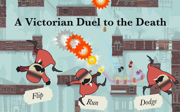 Mentre i piccoli gentiluomini sfrecciano a ritmo vorticoso da una parte all’atra delle piattaforme è possibile utilizzare coltelli, bombe, schermi elettrici e persino piccioni viaggiatori che esplodono una volta a destinazione, per cercare di abbattere l’avversario 4 volte e vincere il duello. L’azione è resa ancora più frenetica dall’apparizione casuale di un tasto al centro dell’arena degli scontri: quando viene premuto con un tap del dito questo tasto cambia al volo le armi in pugno dei due contenenti, ribaltando all’istante la situazione. Infatti per ogni arma esiste una strategia di attacco e una per difendersi: a seconda delle armi impugnate dai contendenti e se il tasto di cambio viene premuto, l’inseguitore può tramutarsi istantaneamente in preda e viceversa.