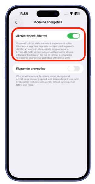 Attivabile manualmente da Impostazioni > Batteria > Modalità di alimentazione, questa funzione: