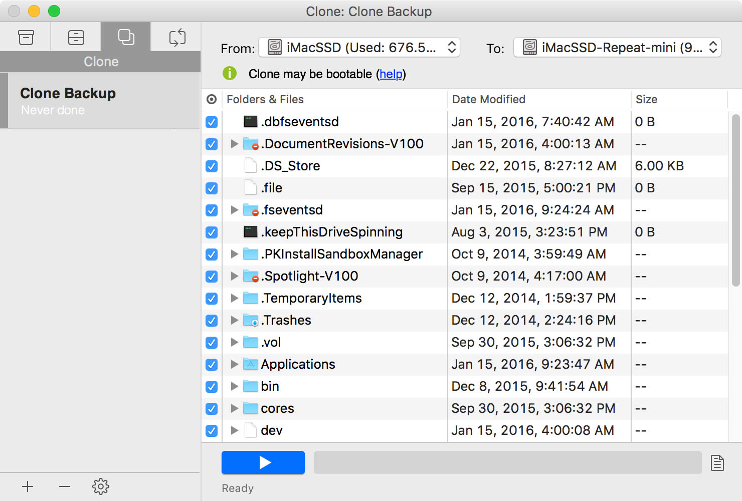 Tra le voci da segnalare, funzioni per creare backup cifrati con tecnologie AES-128, AES-256, Blowfish o il cifrario a blocchi Triple DES, la copia su dischi esterni o di rete, su CD o DVD multipli. Non mancano funzioni di scheduling (per programmare le copie in orari e giorni specifici), per la sincronizzazione di cartelle e altre per il backup degli archivi di Foto, Mail, iTunes, Contatti, iMovie e documenti. L’app consente, tra le altre cose, di clonare perfettamente un drive o un’unità SSD con sistema e applicazioni su un disco destinazione di propria scelta e usare quest’ultimo per avviare il Mac in caso di problemi.