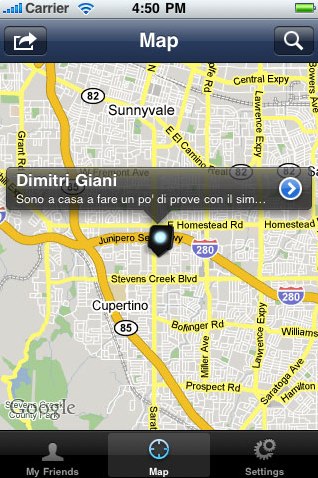 Dobbiamo ammetterlo: l’esclusione di Google Latitude dell’App Store e il ripiego su Safari ci ha lasciato con un po’ di amaro in bocca; se davvero vogliamo un’applicazione per sapere dove sono i nostri amici possiamo ringraziare Dimitri Giani, realizzatore di Get My Friends.