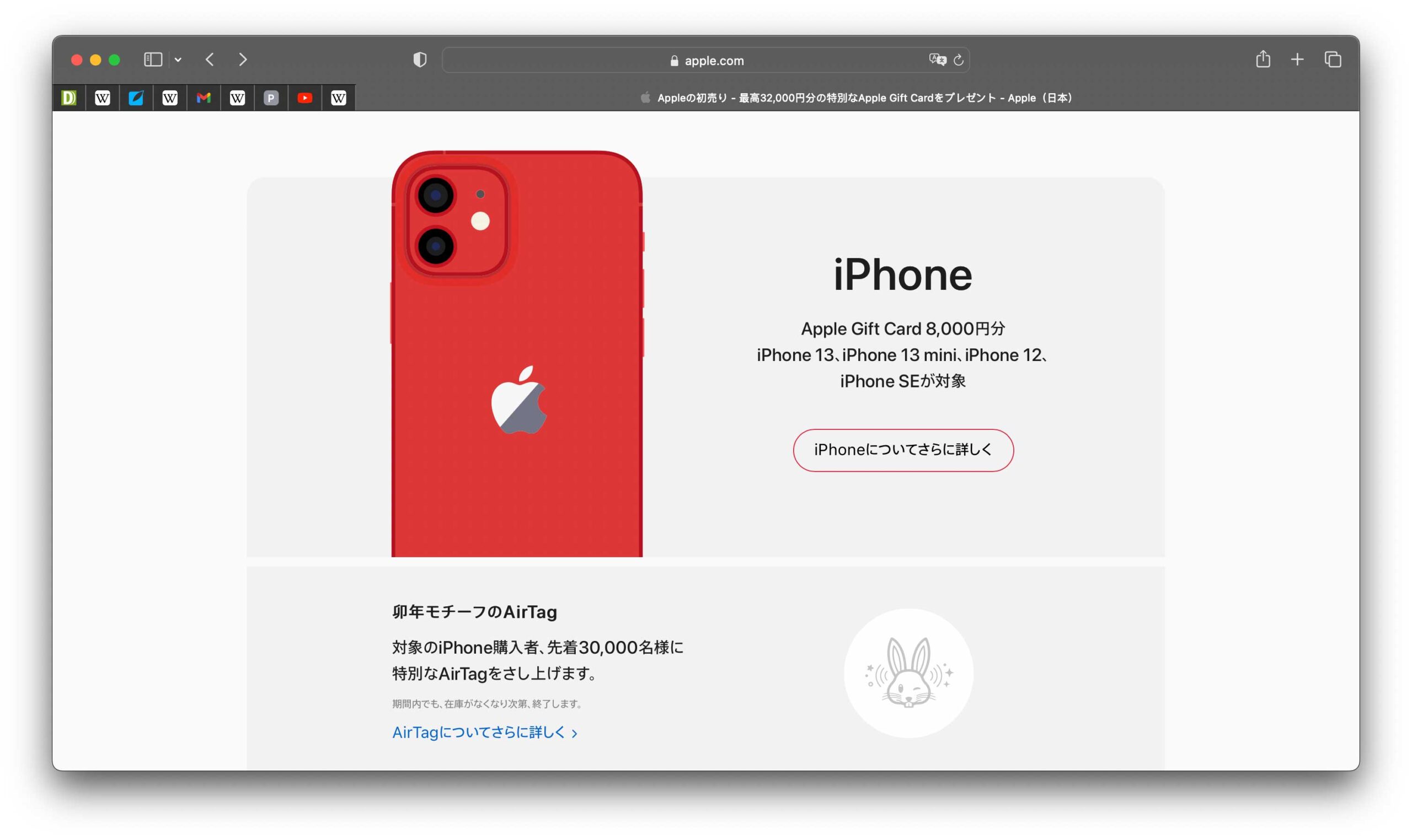 Oltre alla carta regalo, i primi 30.000 acquirenti che in Giappone acquisteranno da Apple un nuovo iPhone 13, iPhone 13 mini, iPhone 12 o un iPhone SE, riceveranno un’edizione limitata di AirTag con inciso il simbolo dell’anno del Coniglio.