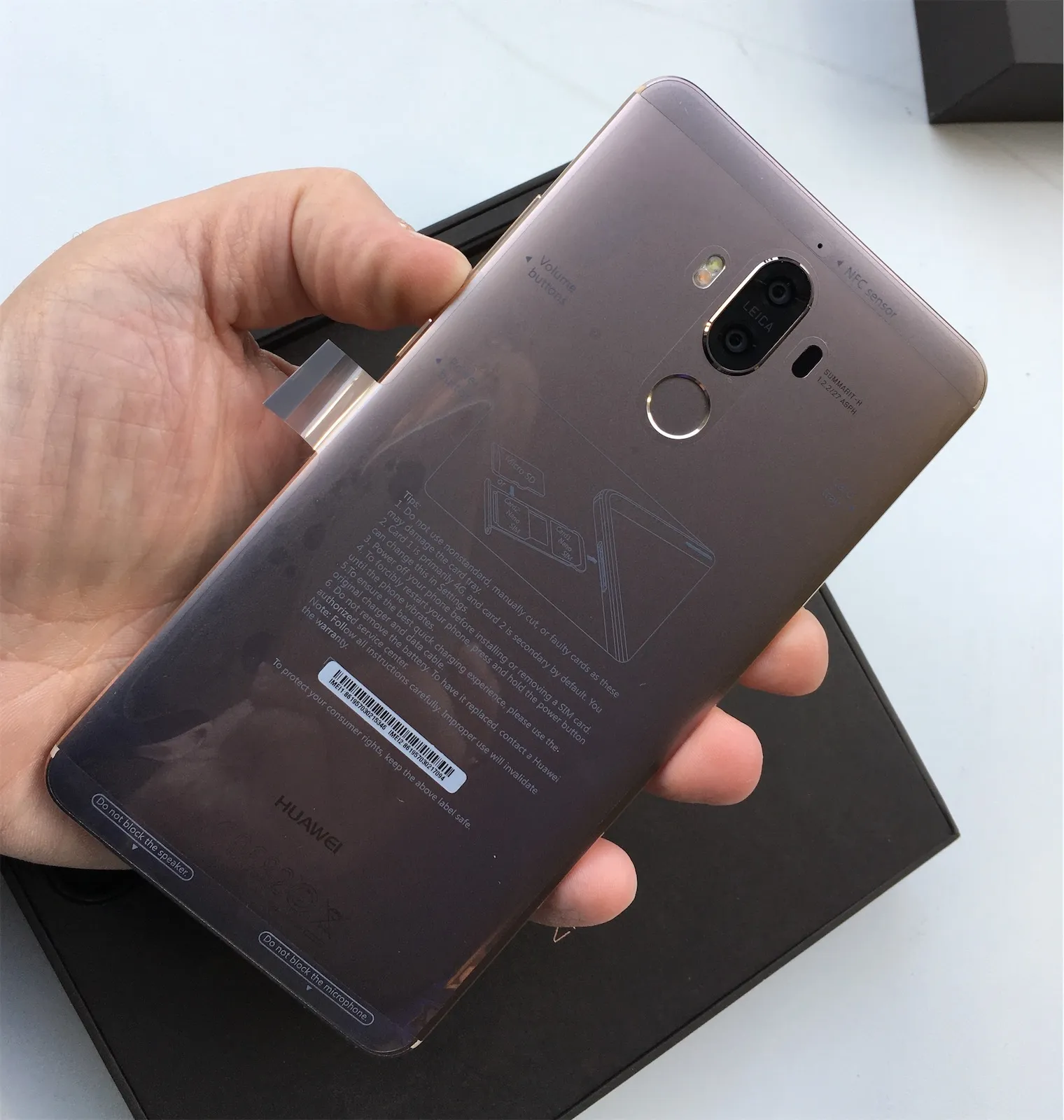 Ecco il nuovo Mate 9 visto da vicino e fotografato in due versioni che almeno per il momento non vedremo in Italia nella data di uscita ufficiale, quella Mocha Brown e quella Champagne. Poca importa: quello che ci interessa mostrarvi è la qualità delle finiture che ha raggiunto l’azienda cinese in quello che, a parte la serie speciale realizzata con Porsche Design, è il modello top di gamma dei suoi Phablet.