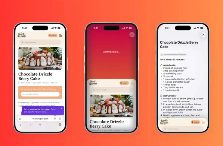 È possibile riassumere le pagine in tre modi: dalla barra degli indirizzi, dal menu della pagina e agitando il dispositivo da un lato all’altro. La funzione è disponibili sugli iPhone recenti con iOS 26 a patto che sia attiva Apple Intelligence (Impostazioni > Apple Intelligence e Siri). la prima volta che si chiede di riassumere una pagina, verrà visualizzata la richiesta di consenso per i riassunti delle pagine.