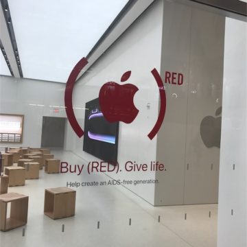 In oltre 400 Apple Store in cinque continenti è stato adottato il logo rosso o le decalcomanie (RED) alle vetrine per accrescere la visibilità della Giornata mondiale contro l’AIDS. Fino al 6 dicembre, Apple donerà 1 dollaro a favore di (RED) per ogni acquisto effettuato con Apple Pay negli Apple Store, su Apple.com o tramite l’app Apple Store, fino a una cifra complessiva di 1 milione di dollari. Anche Bank of America farà una donazione per ogni transazione Apple Pay effettuata utilizzando le proprie carte, a sua volta fino a un totale di 1 milione di dollari.