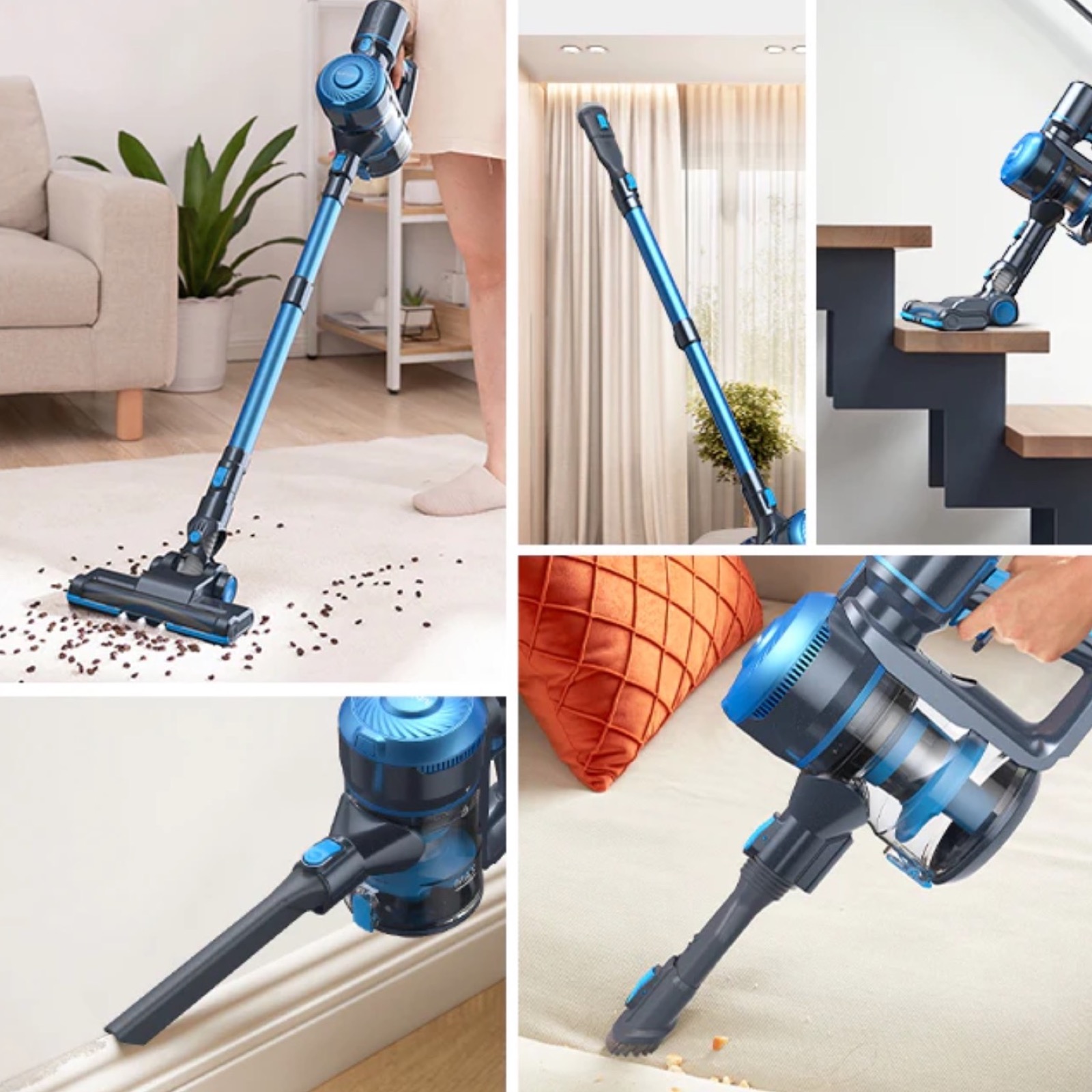 È uno dei quattro aspirapolvere verticale senza fili in promozione. Potenza 25.000 Pa, il motore da 235 Watt gira a 110.000 rpm per aspirare di tutto. Si può scegliere tra tre modalità, anche qui c’è il filtro HEPA a 4 strati e può pulire bene tutti i pavimenti, da piastrelle a parquet e tappeti. Ci sono varie spazzole removibili per usarlo anche nella pulizia di divani e tapparelle, e la batteria removibile offre una autonomia di 50 minuti. Per svuotare il serbatoio basta un click, e ci sono anche le luci frontali per vedere bene tutto lo sporco depositato sul pavimento.
