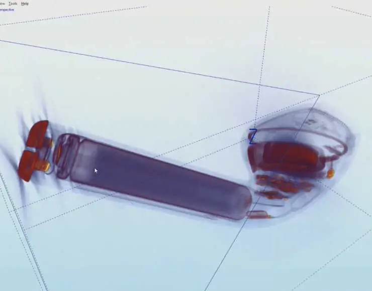 L’immagine è stata realizzata sfruttando una macchina per la radiologia che consente di acquisire immagini tridimensionali e ottenere non le classiche radiografie “piatte” ma un’accurata rappresentazione di quanto ripreso, una potente tecnica di indagine non distruttiva che permette di visualizzare in maniera tridimensionale il volume e la struttura interna degli oggetti investigati grazie a tecniche di rendering in 3D.