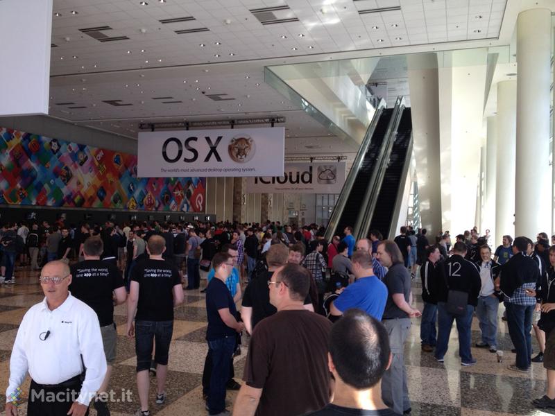 Il clima alla WWDC si riscalda. Oggi, domenica, il Moscone è stato invaso come abbiamo (facilmete) pronosticato ieri, da una vera e propria folla di sviluppatori che si sono accalcati per la registrazione.