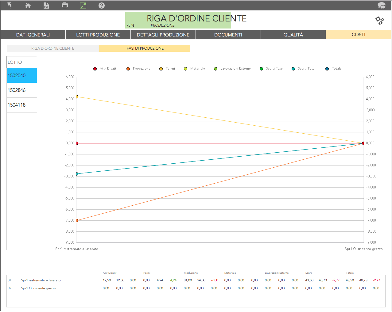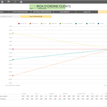Inoltre è possibile registrare i dati relativi alla qualità e quindi gli scarti con le loro causali e tutti i controlli qualitativi necessari per ottenere un prodotto qualitativamente ottimale. Questi dati raccolti direttamente a bordo macchina, grazie a FileMaker, sono disponibili in tempo reale in ufficio, e tramite riassunti, cruscotti e report permettono di fare le valutazioni che permettono all’azienda di tenere conto dei tempi e dei costi di produzione a preventivo e consuntivo.