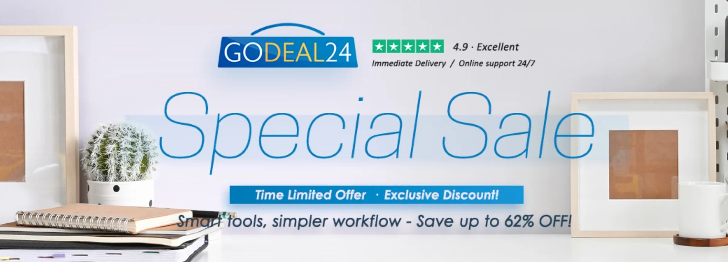 Approfittate dello shopping senza stress grazie alla consegna digitale di Godeal24, che invia il software direttamente alla vostra email pochi secondi dopo l’acquisto. Inoltre, con una valutazione TrustPilot positiva al 98% e supporto tecnico esperto 24/7, potete essere certi della qualità del prodotto che acquistate.