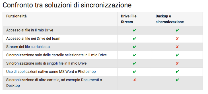 L’azienda però afferma che anche Backup e Sincronizzazione – benchè pensata per più gli utenti consumer – può essere usata dagli utenti di G Suite come un’alternativa; non sarà possibile accedere alle funzioni esclusive di Drive File Stream, ma Backup e Sincronizzazione include ad esempio la possibilità di sincronizzare file locali presenti sul computer, cosa non possibile con Drive File Stream.