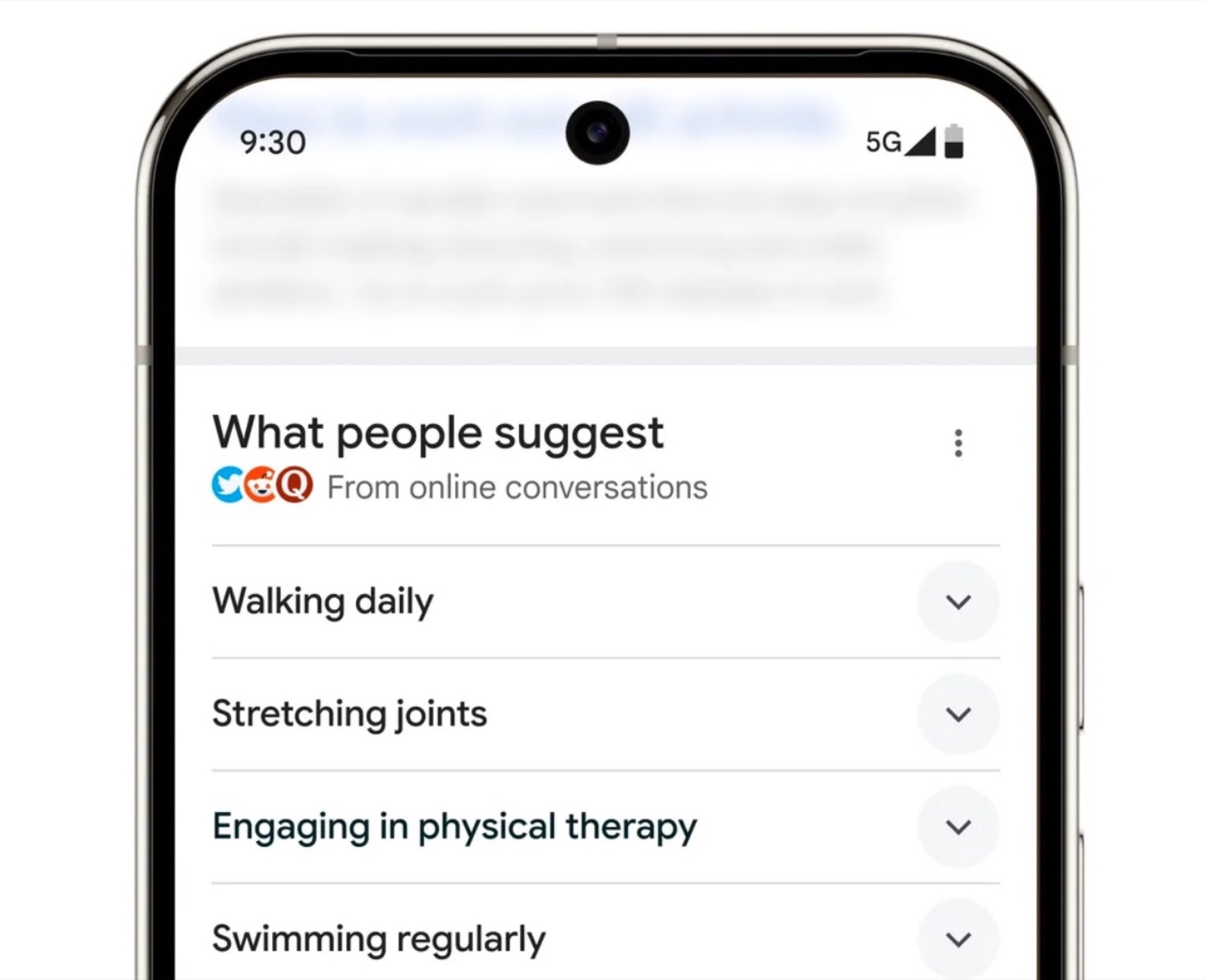 Mettiamo caso che soffriamo di artrite e decidiamo di cercare una soluzione online, allora se l’AI trova abbastanza post sui social per costruire una risposta, nella parte superiore delle ricerche mostrerà questa nuova sezione includendo appunto una serie di “approfondimenti reali da persone che presentano la stessa condizione”.