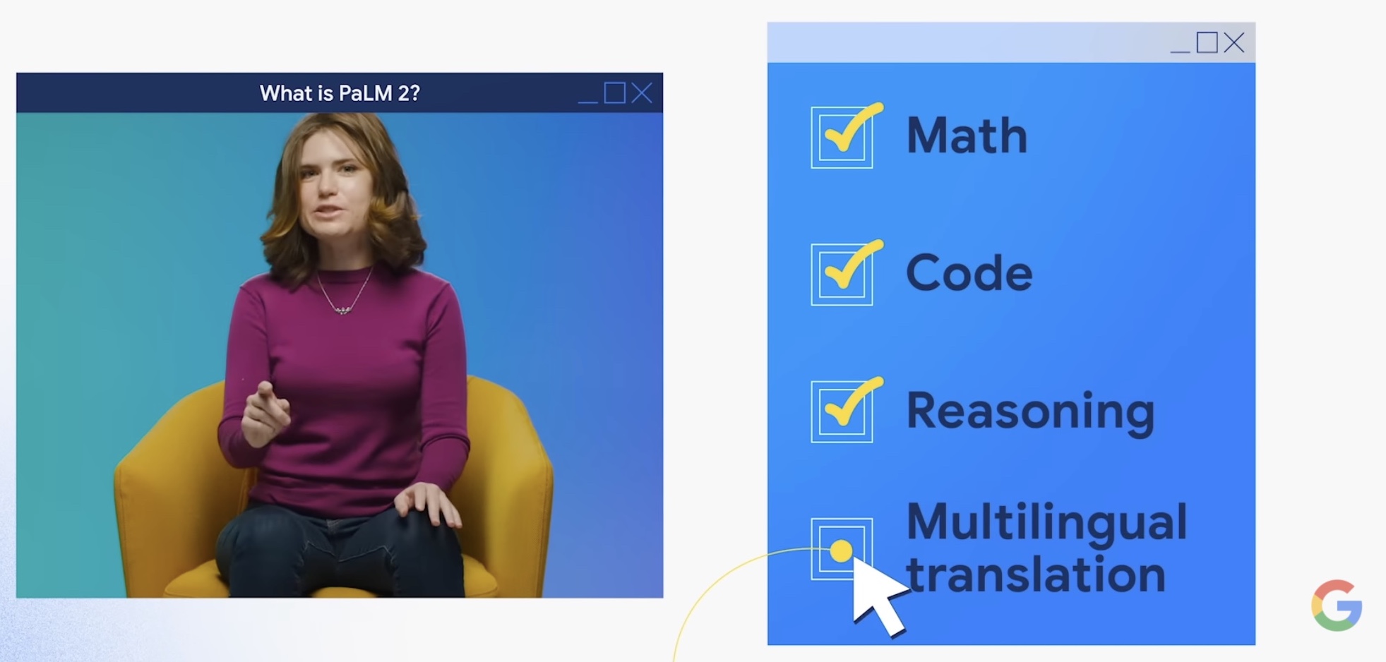 Il Wall Street Journal riferisce che Med-PaLM 2 è una variante di PaLM 2, annunciata nell’ambito della Google I/O 2023, pensata per offrire funzionalità che gli consentano di sintetizzare informazioni provenienti da immagini mediche come radiografie e mammografie. Si può immaginare come un collaboratore IA che aiuta i radiologi a interpretare le immagini e a comunicare i risultati. Questi sono alcuni esempi di utilizzo di PaLM 2 in ambiti specializzati ma gli ambiti di utilizzo possono essere molti altri.