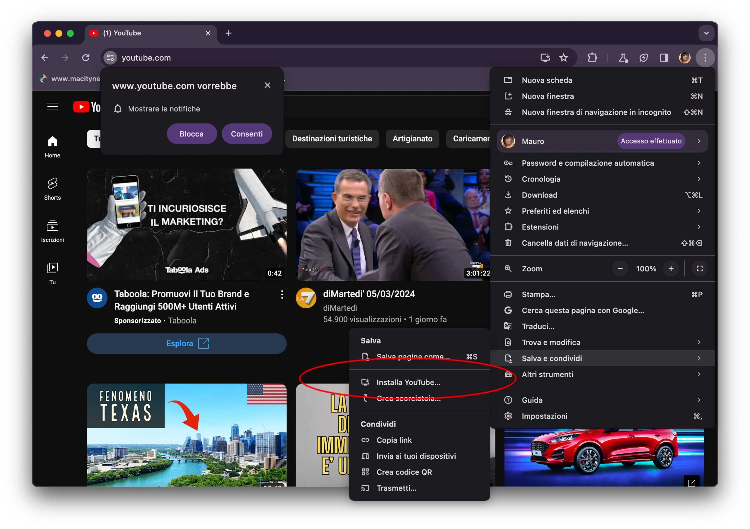 Con siti come YouTube e Reddit, l’opzione appare in automatico; le applicazioni così salvate sono memorizzate nella sottocartella “Applicazioni Chrome” nella cartella Applicazioni; da qui possono ovviamente essere trascinate nel Dock e richiamare al volo il sito che serve come se fosse un’applicazione.
