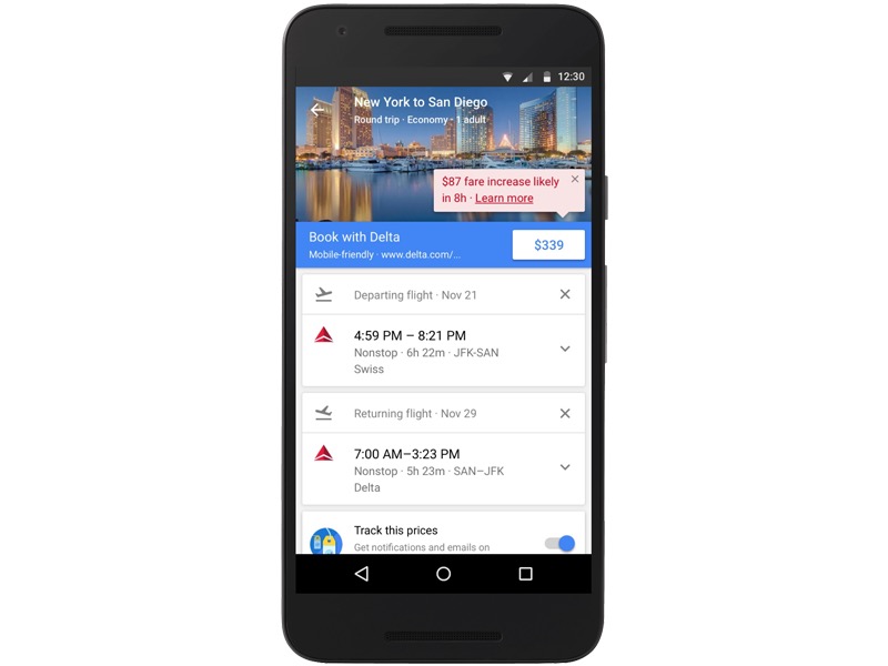 La modifica principale e più interessante riguarda l’analisi dell’andamento dei prezzi dei voli esaminati: sfruttando lo storico, Google Flights è in grado di prevedere con un certo grado di precisone se il costo per un tratta aerea potrebbe aumentare o diminuire nei giorni successivi, avvertendo di conseguenza con un pop up se è il caso di aspettare o invece di prenotare subito.
