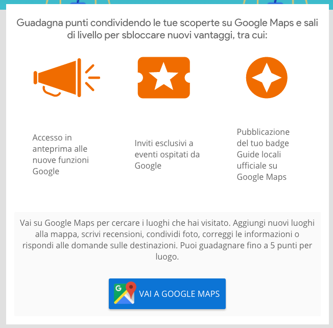 Questi vantaggi vanno dalla ricezione di una semplice newsletter fino alla partecipazione ad eventi Google organizzati per le sole guide locali, passando per esempio ad un aggiornamento gratuito del proprio spazio su Google drive,