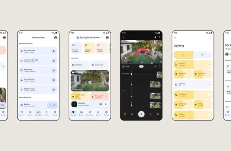 Tra le prime interessanti caratteristiche, l’app migliora la visualizzazione delle telecamere e offre naturalmente compatibilità con più dispositivi. Viene introdotto un un layout a cinque schede, in modo che gli utenti possano facilmente trovare e accedere a ciò di cui hanno bisogno per controllare la propria casa smart. Google descrive e distingue le aree in questo modo: