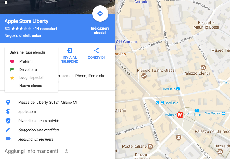 Su Google Maps la nuova funzionalità è disponibile sulle schede degli esercizi, cliccando sul pulsante “Salva”: si aprirà un menu contestuale che consente di aggiungere i luoghi ai preferiti, ai luoghi da visitare, all’elenco luoghi speciali e di creare appunto una nuova lista personale. E’ comunque possibile continuare ad accedere ai luoghi nel menu di lato presente su Google Maps per controllare i luoghi salvati e consultare le liste sia direttamente su desktop che sul cellulare.