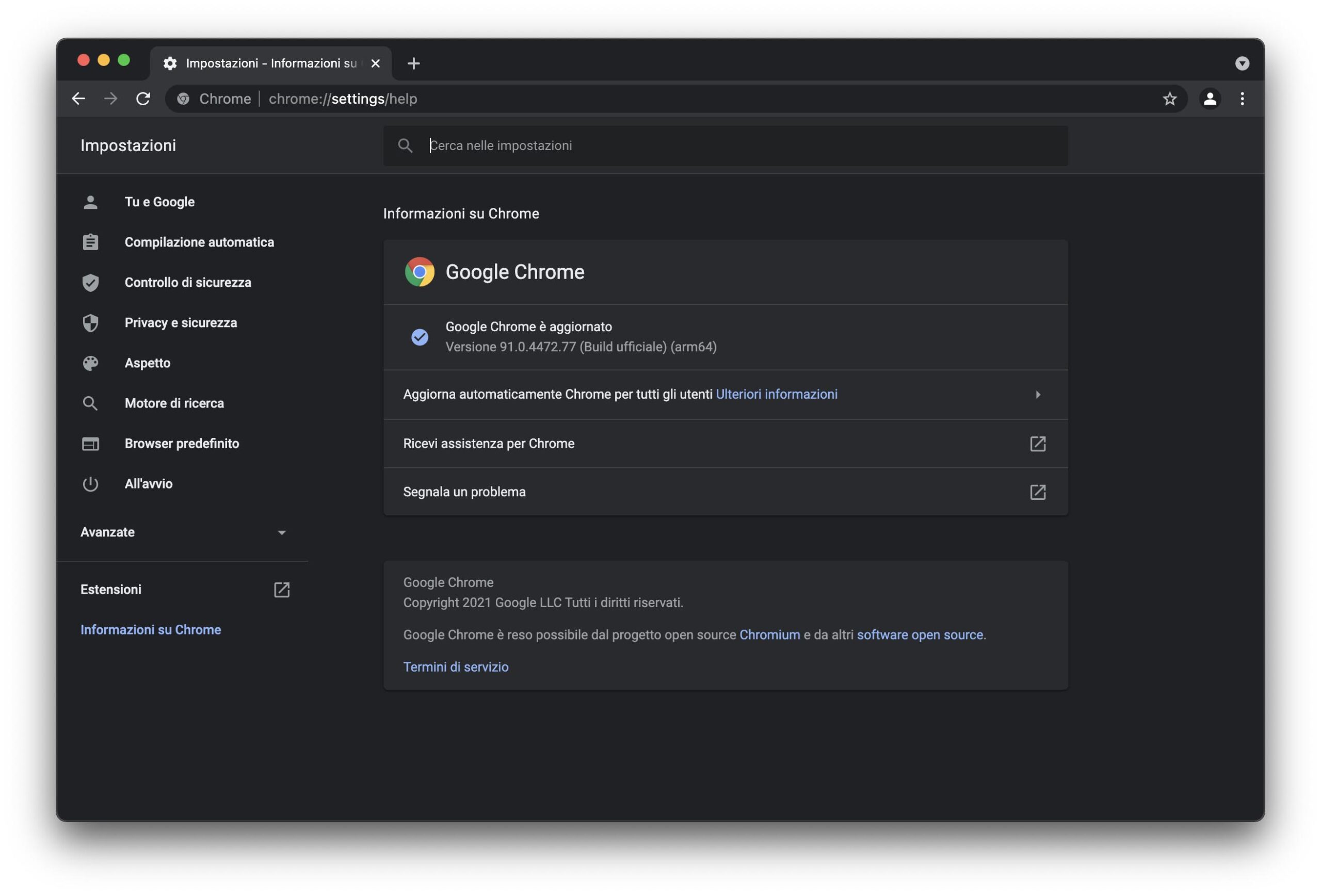 L’ultima versione di Chrome 91 per Mac o Windows si scarica da qui. Su Mac ora il sistema operativo minimo richiesto è macos X 10.10 Yosemite, presentato nel 2014 e non più supportato neanche da Apple. Ricordiamo che Google già a novembre ha rilasciato la versione di Chrome per Mac M1.