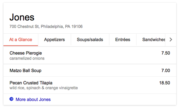 Google ha ufficialmente annunciato l’arrivo do una nuova funzione che permetterà agli utenti di osservare direttamente i menù dei ristoranti sui risultati di ricerca. La nuova funzionalità era apparsa già da qualche settimana ma ora la grande G ha ufficializzato l’implementazione con un post ufficiale su Google+, dove conferma l’esperimento, al momento disponibile comunque solo in USA. Google non chiarisce in maniera univoca da dove provengano le informazioni sui menù dei ristoranti, ma in base alla analisi dei risultati sembra che al momento possano giungere dal sito americano Allmenus.com, che pubblica i menù completi di molti ristoranti, partendo dagli antipasti per arrivare fino al caffè.