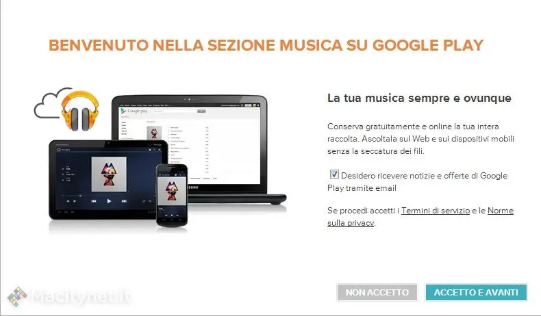 Se vorrete la musica in locale, sul vostro Mac, avrete la possibilità di scaricarla tramite il Music Manager di Google, ma a quel punto per ascoltarla vi servirà un altro programma, come iTunes o Winamp. Per chiunque voglia sfruttare Google Play Music deve essere quindi chiaro che il servizio nasce principalmente per chi sfrutta i servizi “on the cloud”, non per chi vuole i brani mp3 sul proprio Mac. Preso atto delle differenze con iTunes, vediamo dunque come iniziare con Google Play Music.