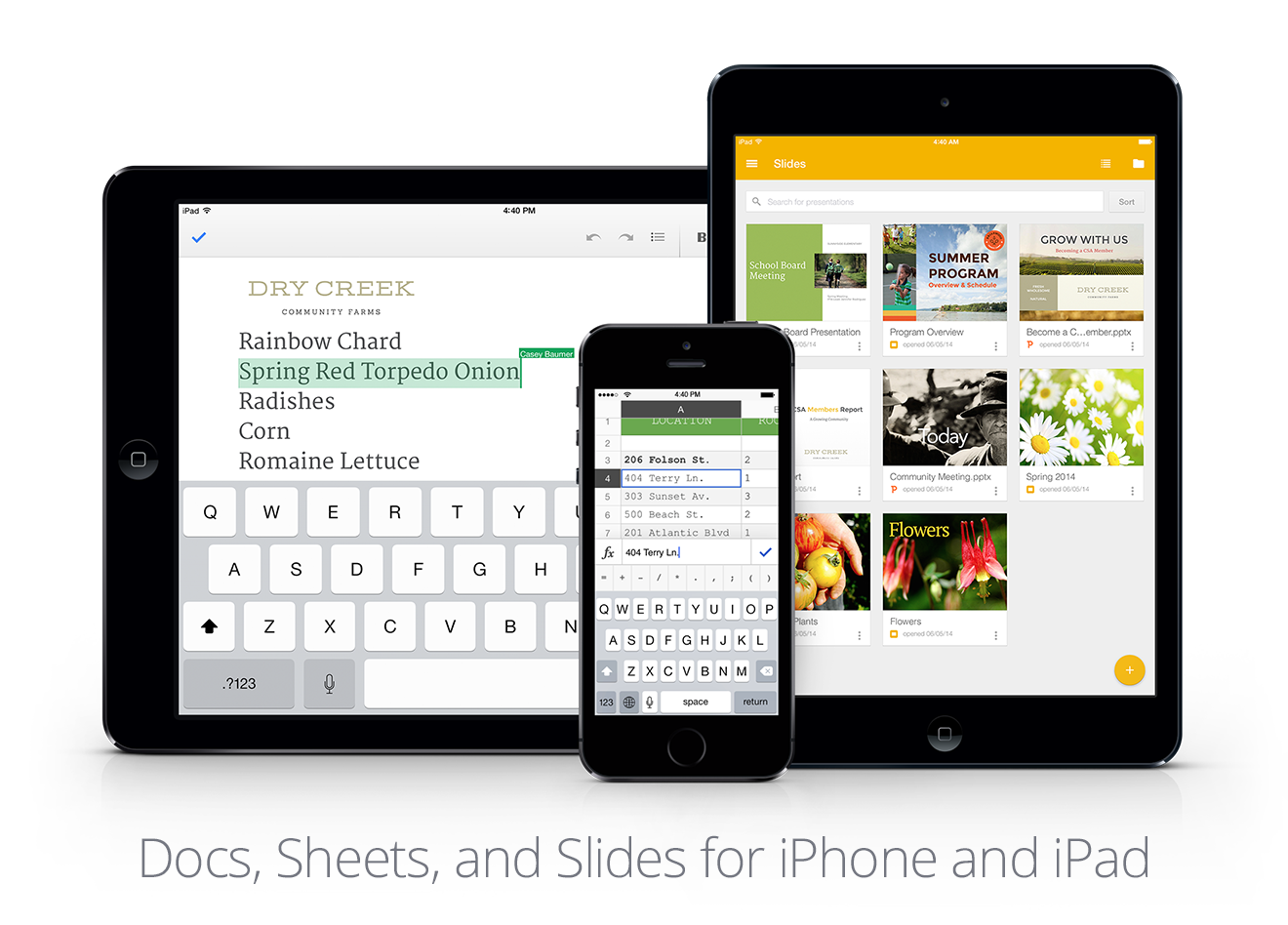 Google ha lanciato ufficialmente Presentazioni ed aggiornato Documenti e Sheets per iOS, migliorando così la suite office per i dispositivi Apple.
